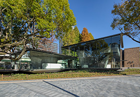 ガラス張りのエントランス棟