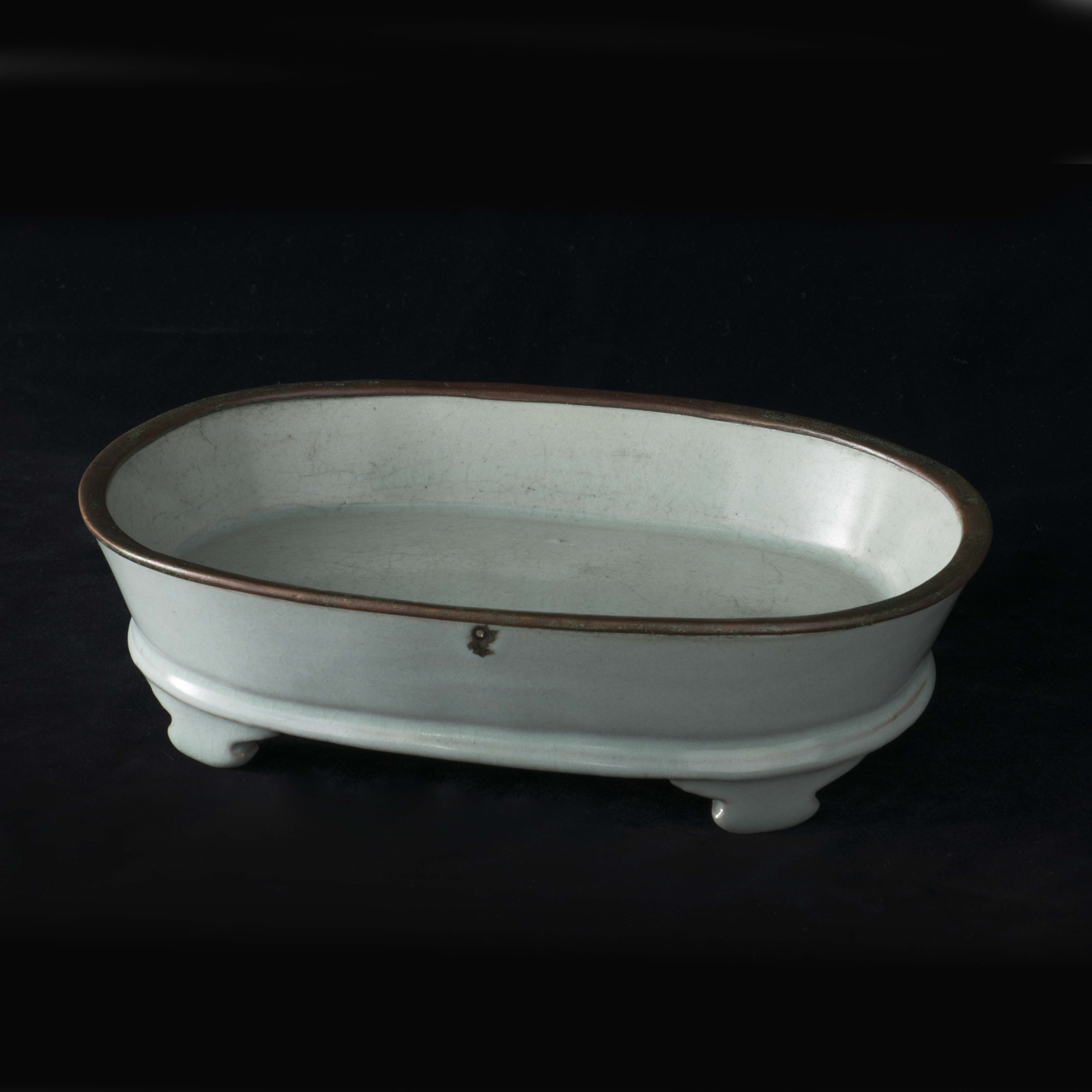 「水仙盆」は汝窯を代表する器形であり、その用途は謎であるが、精緻で美しいフォルムと「天青」と呼ばれる青味を帯びた釉色が特徴である。日本にある数少ない汝窯青磁を代表する作品。