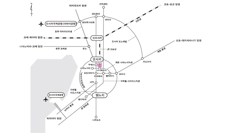 게이한본선京阪本線「기타하마北浜」 역 26호 출구 각역에서 약400m [오사카시중앙공회당大阪市中央公会堂 동쪽]