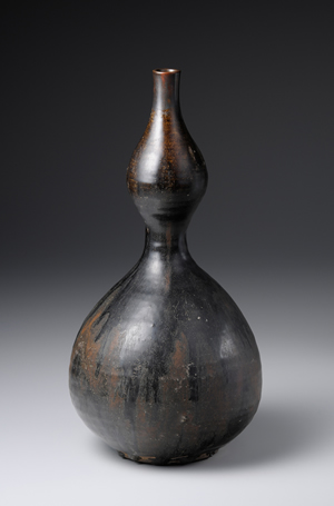 葫蘆瓶器型雖起源於中國,然高麗時期卻發展出屬於自身特有的造型風格。瓶身上下延展,器型線條流暢而美麗。本作器身下腹豐滿,呈現穩重的安定感。器表全面施罩黑釉,且因重複施掛釉料,而使器面釉色於燒成後呈現黑、褐等色調的多重變化。大型的黑釉葫蘆瓶屈指可數,十分罕見。高麗時期的黑釉,乃於青瓷窯場中與青瓷一起生產。主要燒製瓶、壺等貯藏用器,產量不豐。