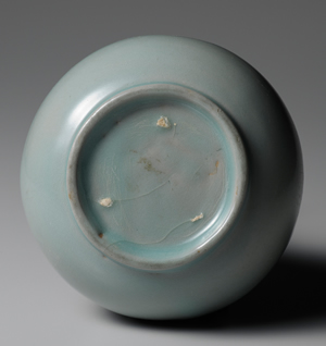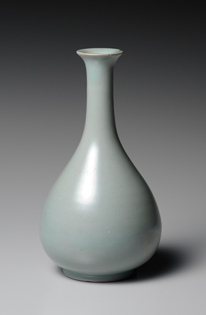 所謂「素紋」青瓷,乃指不施任何紋飾之青瓷,屬於高麗青瓷基礎的裝飾技法。類似本器一樣釉色精良、器形優美的青瓷製品,特別產製於11世紀後半至12世紀前半之間。本器作玉壺春器型,其原型雖可溯自中國宋代,然垂腹圓鼓的穩重器型,及深邃靜謐之青瓷釉色,可說是高麗青瓷特有之風格。圈足內遺留的硅石支燒痕跡極小,結合器型特色,無不使人想到北宋的汝窯青瓷。全羅南道康津郡沙堂里窯址曾出土同類型之陶片。