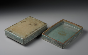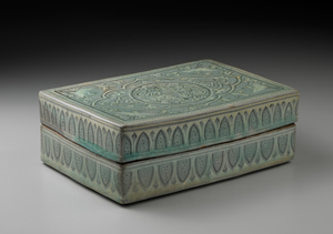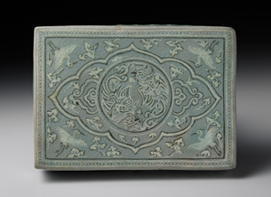 此器呈長方盒形,推測其用途為盛裝化妝品的容器。器蓋中央與4個角落,分別描繪鳳凰紋與雲鶴紋。器蓋側面裝飾含連珠裝飾元素的蓮瓣紋。全部紋樣皆採用黑白象嵌技法。13世紀時,鳳凰紋成為常用紋飾,紋樣變得細瑣且有圖案化之傾向。全羅北道扶安郡柳川里窯址等曾出土帶有類似紋飾之陶片。