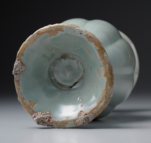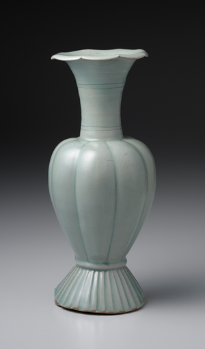 器腹刻畫八道稜線,器型寫實模仿瓜形之八瓣瓜形瓶。器口開敞呈喇叭花狀,足向外撇作裙踞摺紋。韓國國立中央博物館藏有類似作品,其與高麗第17代國王仁宗(在位1122-1146)之諡冊(為死者生前行跡之記錄)共伴出土,為12世紀前半之基準作品。此器亦屬同一時期之作,優美釉色為高麗青瓷特有之「翡色」。全羅南道康津郡沙堂里窯址曾出土數片同類型的陶片。