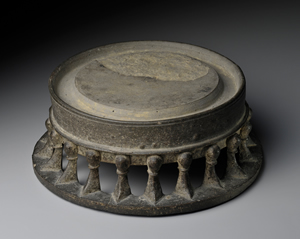 器型仿自中國唐代的多足硯。稜角分明的俐落造型,為7世紀之後須惠器的特徵之一。宮殿、官衙及大型寺院等出土不少同類型硯台,推斷此類硯台可能作為儀式用器等,具有特別用途。本作據傳出土自大阪府之陶邑窯,自其尺寸與作風觀之,堪稱須惠器多足硯中的頂級之作。